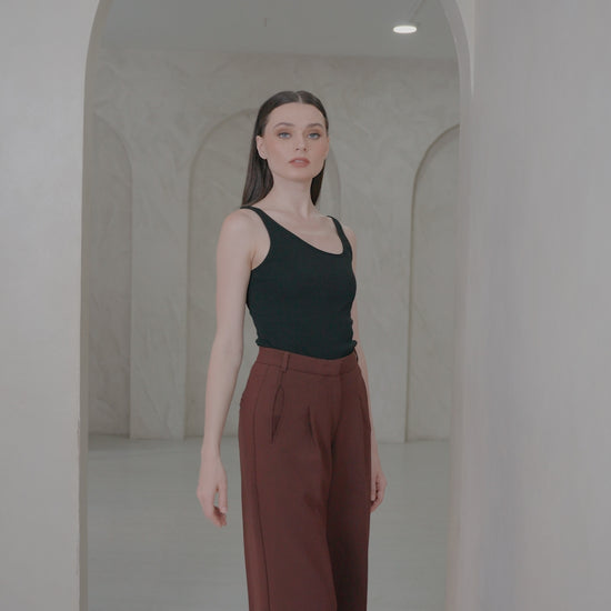 Refined tailoring meets modern ease in the Column Wide-Leg Trouser. Designed with a high-rise fit, elegant front pleats, and a wide-leg silhouette, these trousers offer structure without sacrificing comfort. Side pockets add function, while a clean waistband and back welt pockets keep the finish sleek. Perfect for power dressing or elevated off-duty looks.